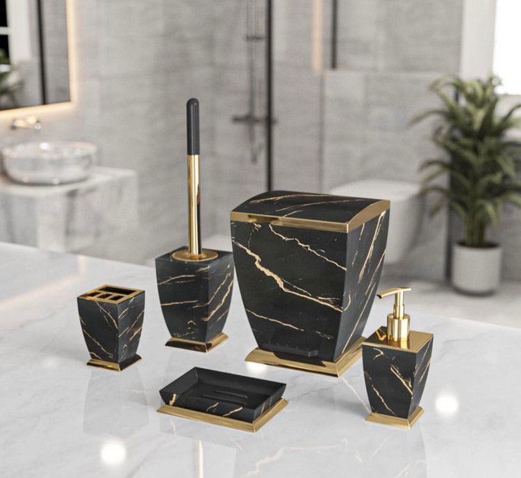 ست شش پارچه سرویس بهداشتی هارمونی مشکی طلایی مدل آوا