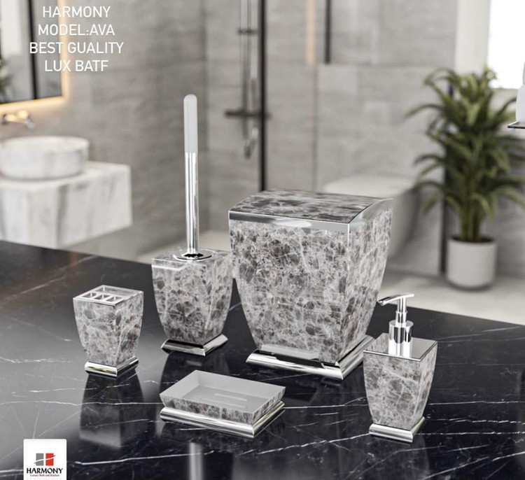 ست شش پارچه سرویس بهداشتی هارمونی طرح سنگ طوسی کروم مدل آوا