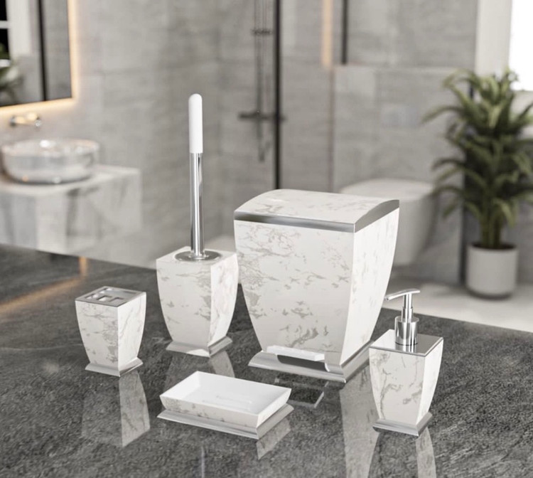 ست شش پارچه سرویس بهداشتی هارمونی طرح سنگ سفید کروم مدل آوا